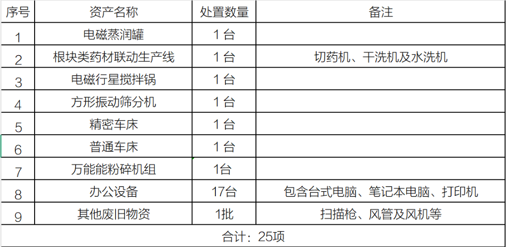竞价丨叶开泰国药旧设备处理项目信息公告